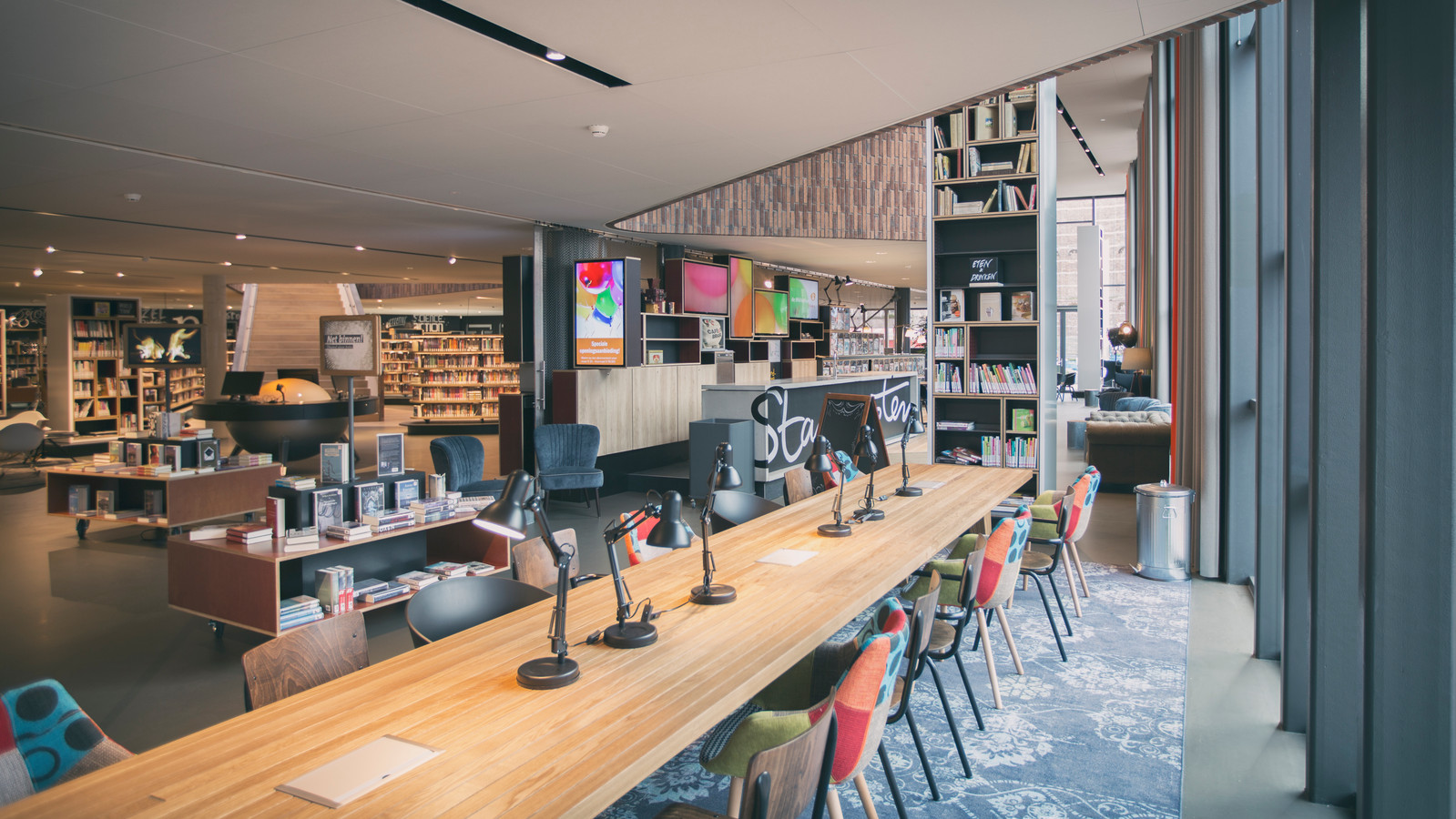 De ruimtes zijn zorgvuldig ontworpen om diverse activiteiten te accommoderen, van lezen en studeren tot workshops en evenementen. Grote ramen laten overvloedig natuurlijk licht binnen, terwijl comfortabele zitgedeeltes uitnodigen tot langdurig verblijf. Speciale zones zijn ingericht voor verschillende leeftijdsgroepen, waardoor de bibliotheek aantrekkelijk is voor zowel jong als oud.